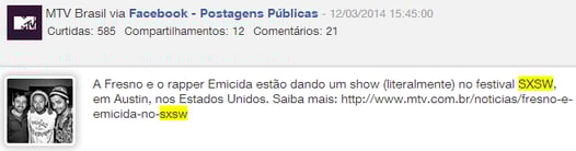 Entre os posts do facebook mais curtidos está a divulgação que a MTV fez: